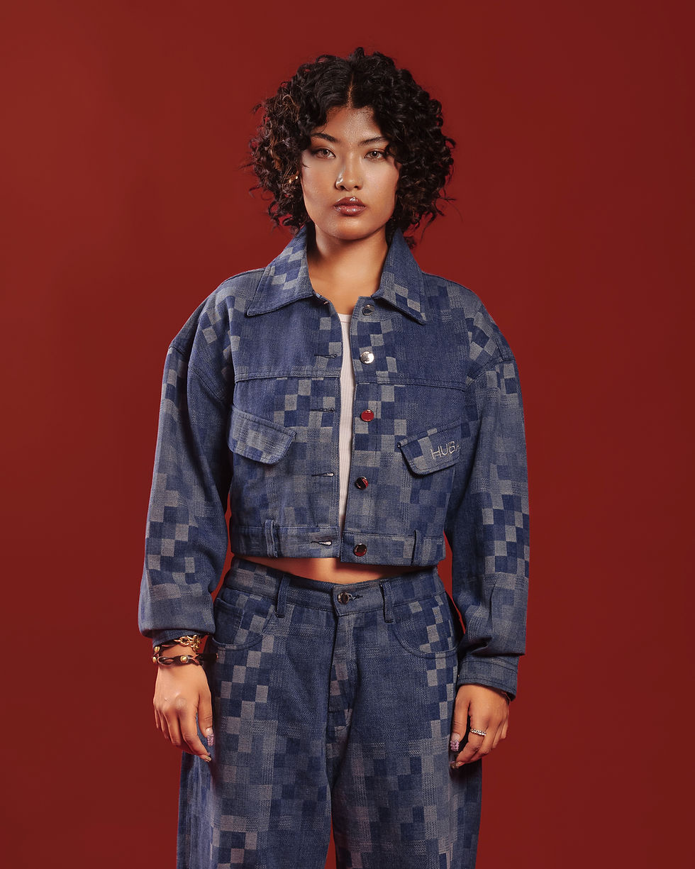 HUBA Pixelated Crop Jacket - Blue